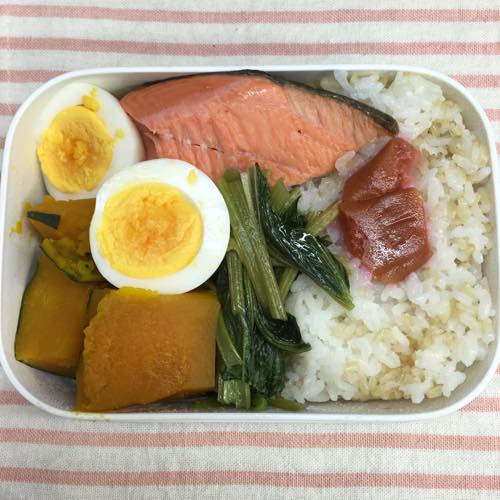 お昼は紅鮭と玉子、野菜のお弁当でした。