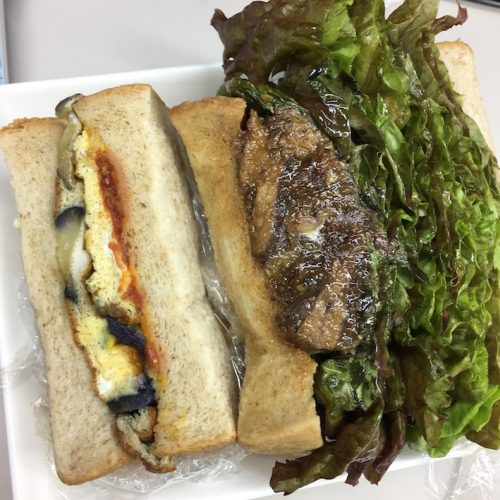 お昼はイワシ缶(DHA.EPA)と茄子入り卵焼きのサンドイッチでした。