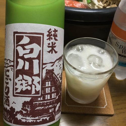 お供はにごり純米酒「白川郷」の炭酸割り