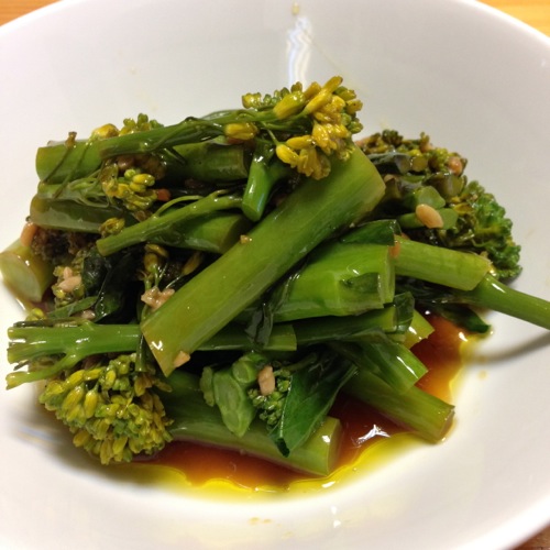 今日のサラダは大きめの菜の花のように見えますが、茎ブロッコリーのスティックセニョールです。スティックセニョールの食感もほんのりした甘みもグリーンアスパラに良く似ています。このサラダの醤油麹ドレッシングに亜麻仁油を使っていますので、残ったドレッシングも美味しくいただきました。昼の鯖のDHA・EPAと合わせて今日はオメガ3たっぷりです。