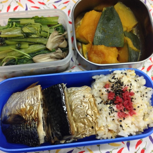 お昼は炙りしめ鯖のお弁当。DHA・EPAたっぷりです。