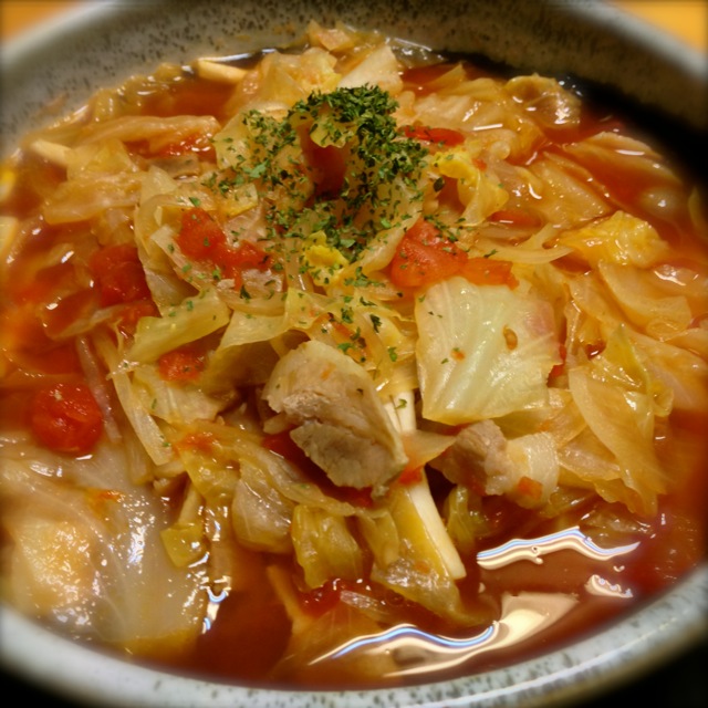キャベツ・玉ねぎ・トマト・鰹昆布出汁・煮干し・塩・醤油・みりん