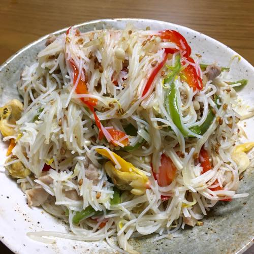 さて、今夜は野菜たっぷりの焼きビーフンです。