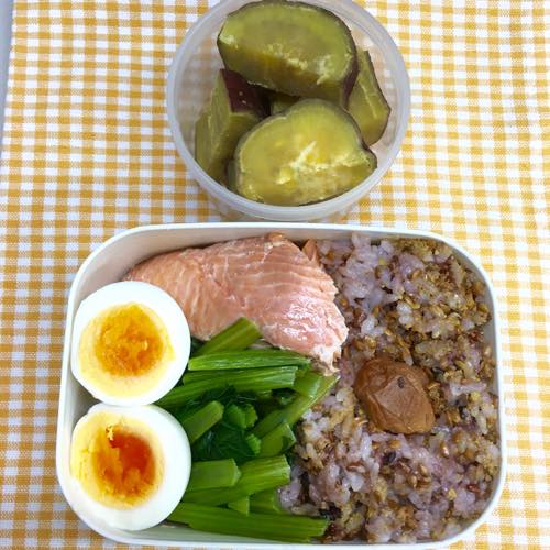 お昼は生鮭(DHA.EPA)、ゆで玉子、野菜のお弁当でした。